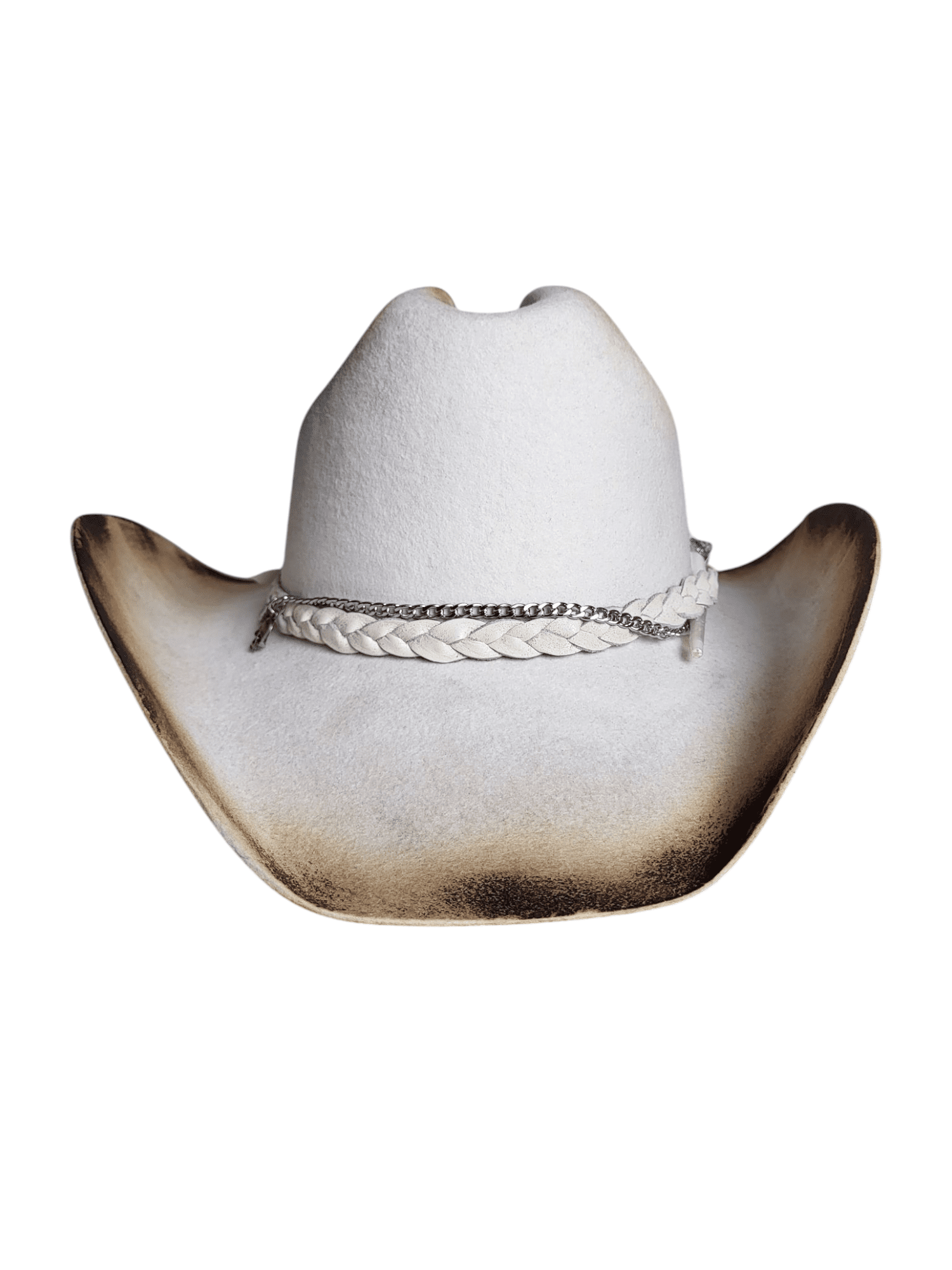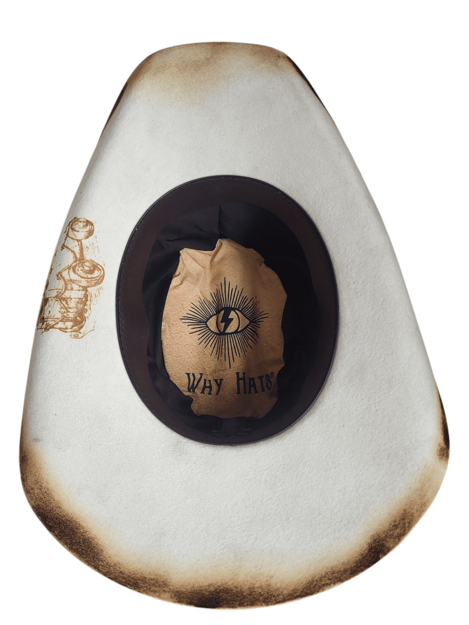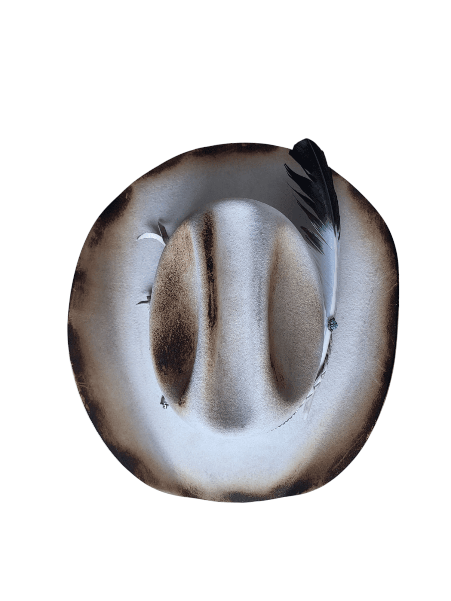 Kapelusz kowbojski w kolorze beżowym, wypalany.