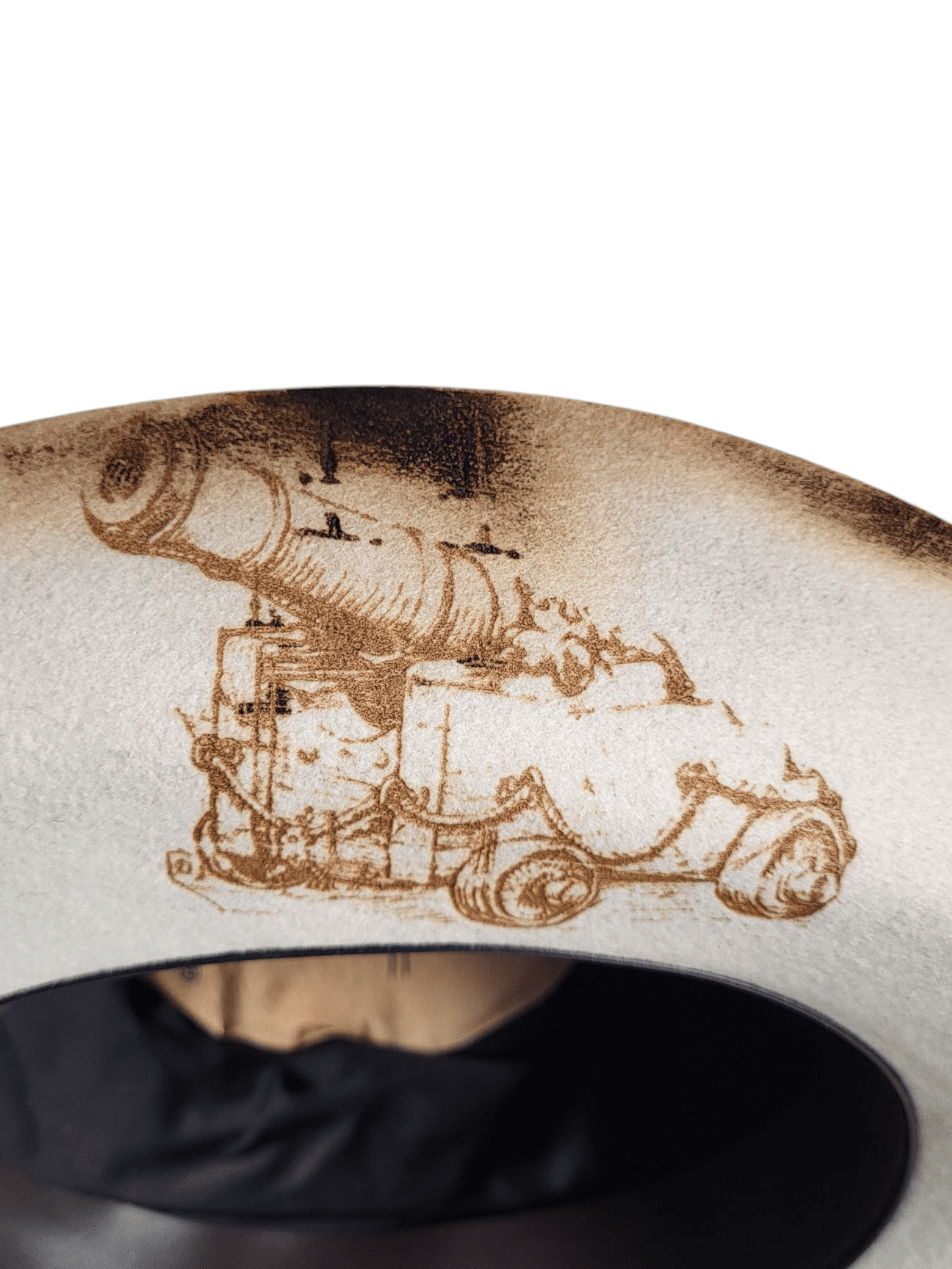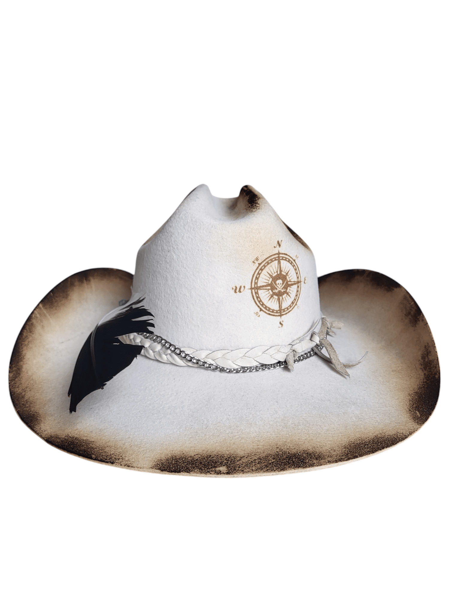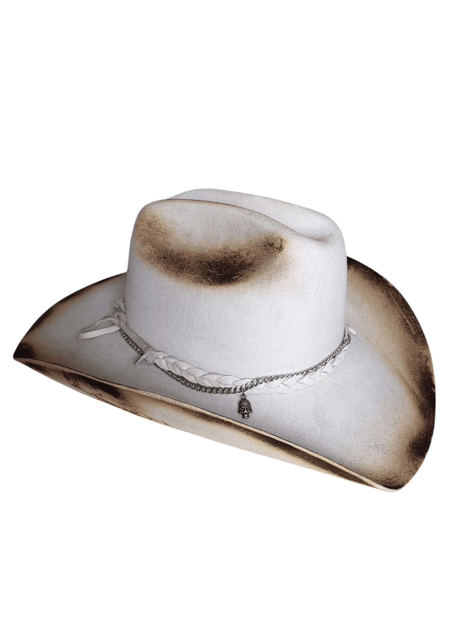 Kapelusz kowbojski w kolorze beżowym, wypalany.
