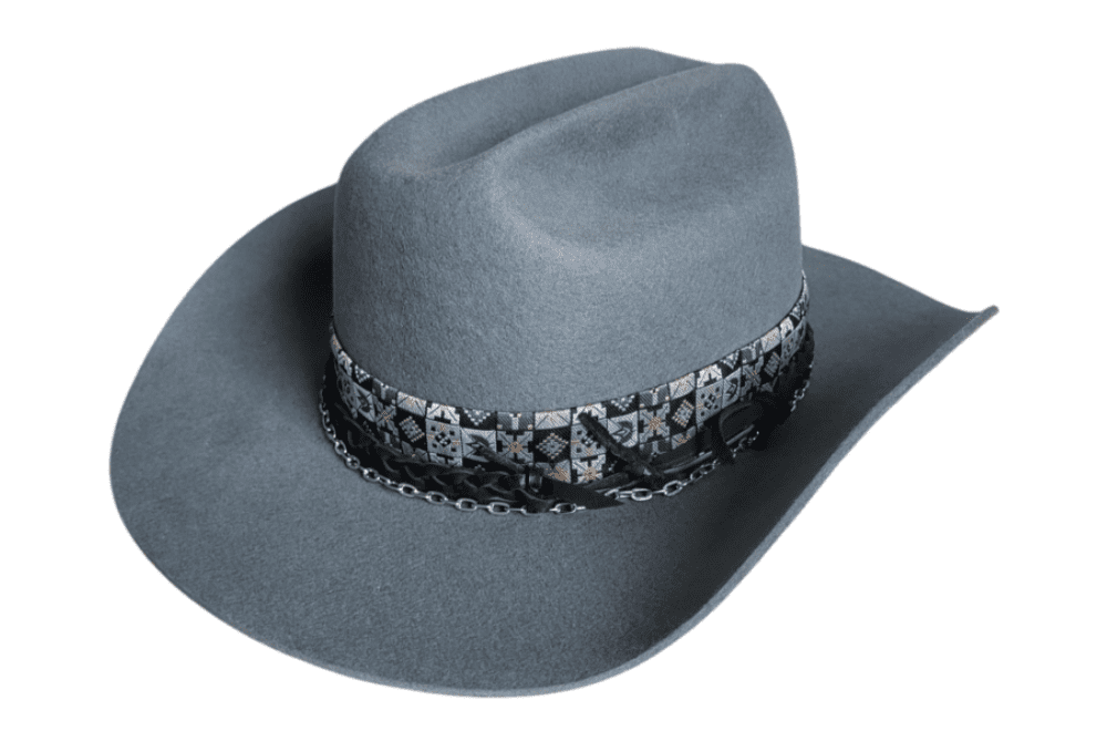 Kapelusz kowbojski w kolorze błękitno – szarym.