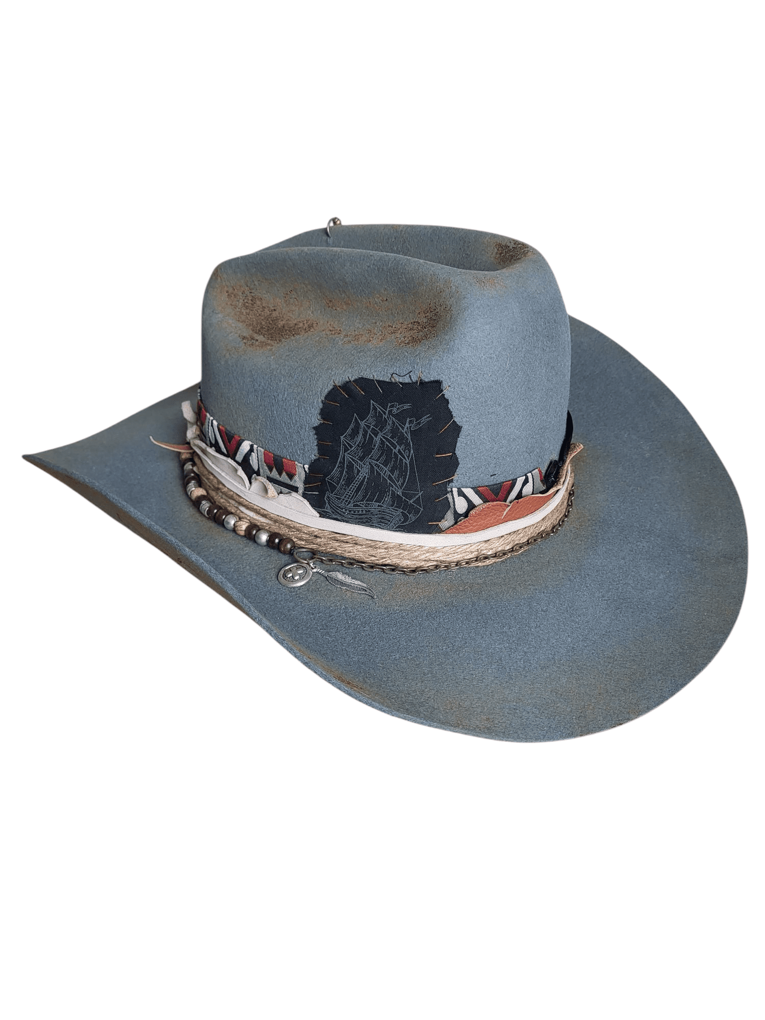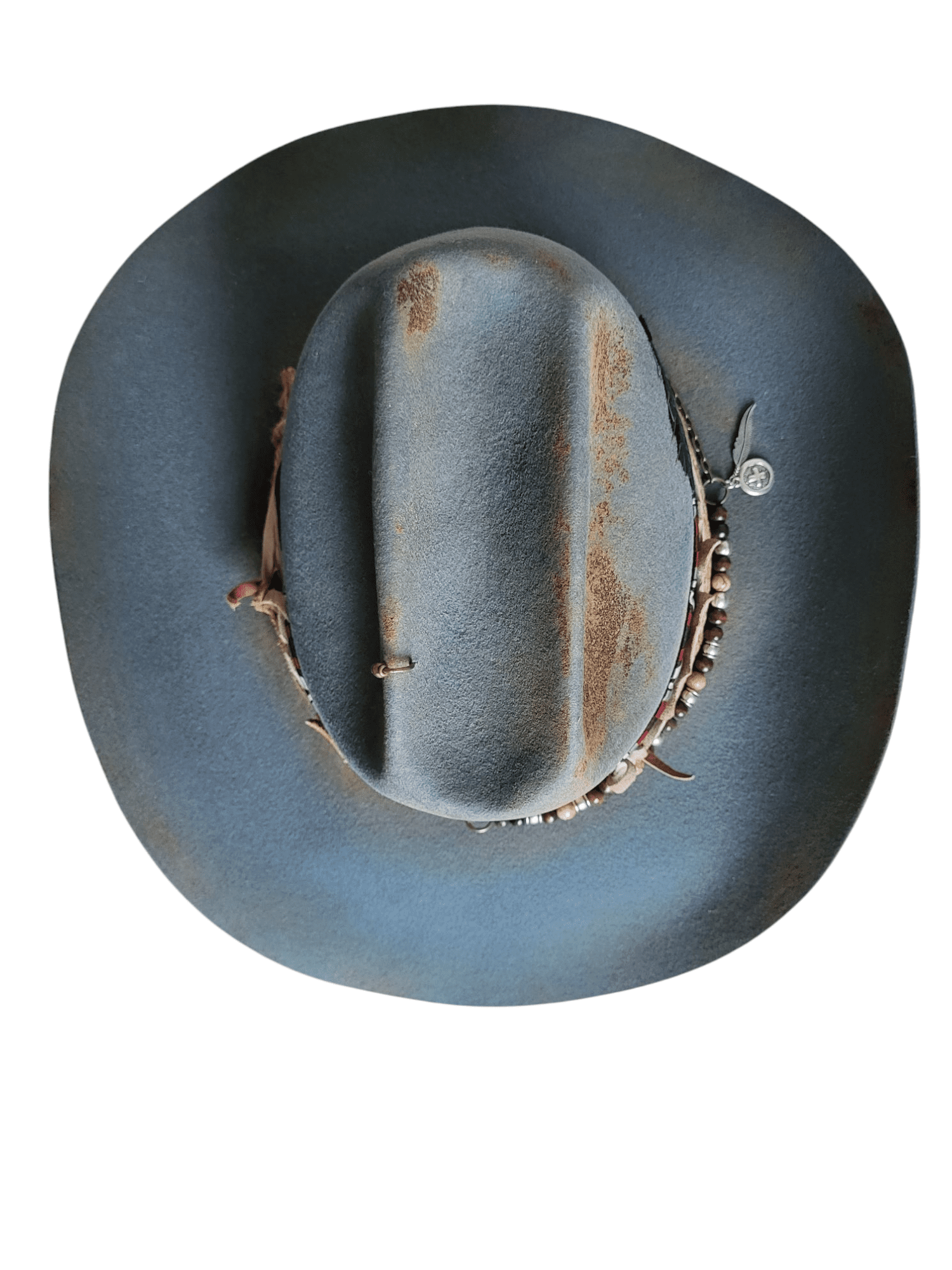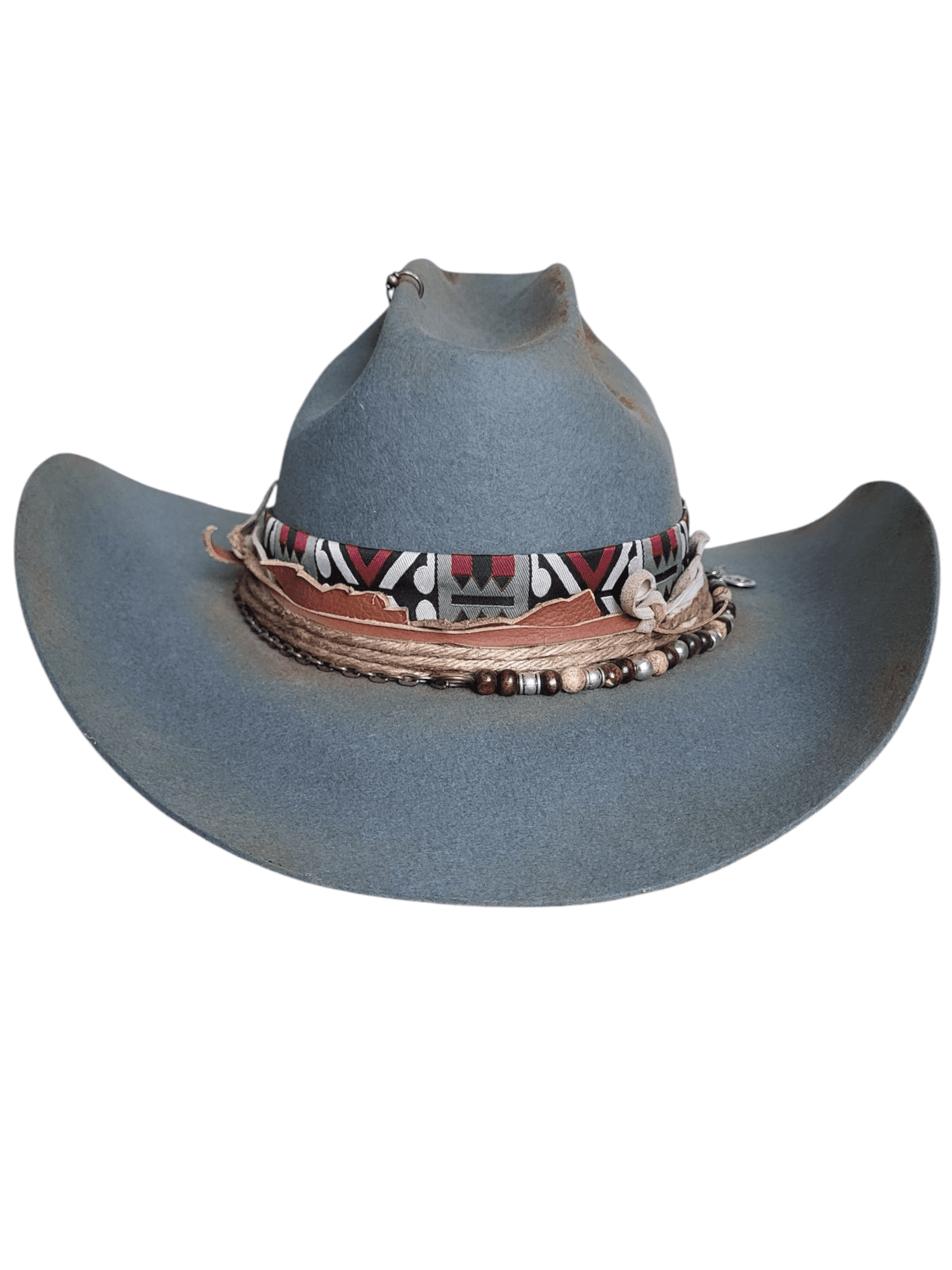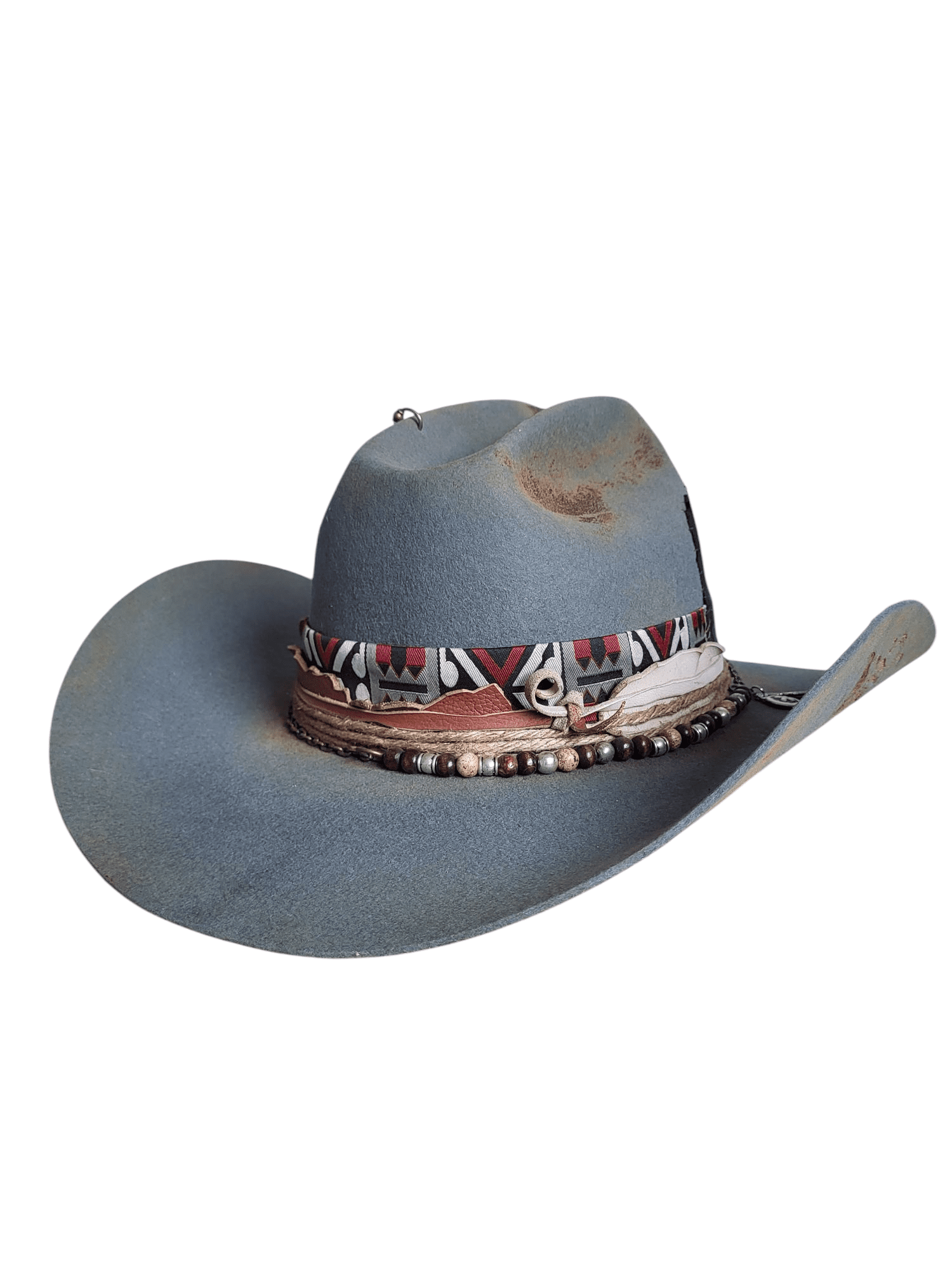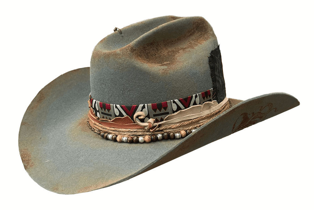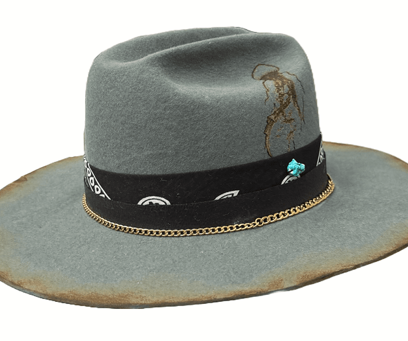 Kapelusz Kowbojski w kolorze błękitno- szarym, wypalany.